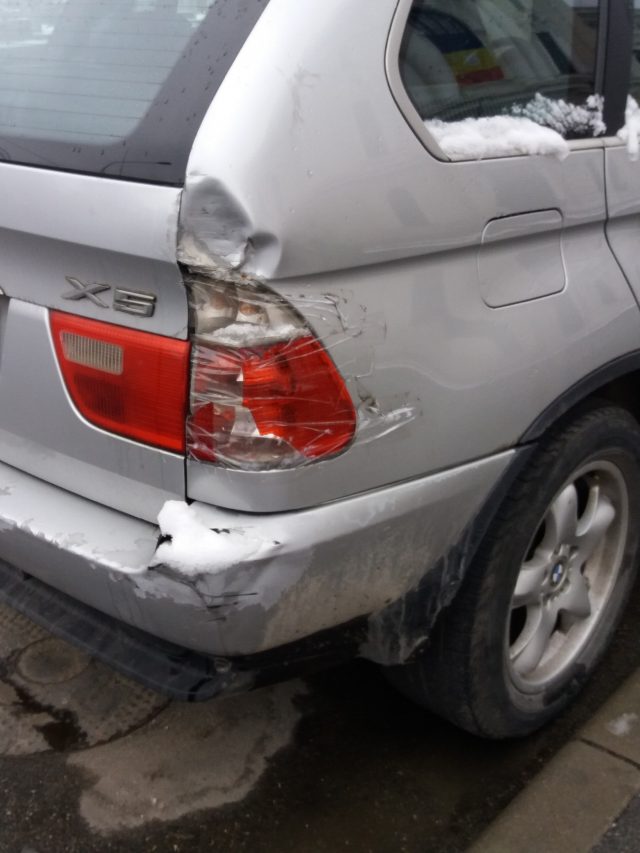 Nu știu dacă există o fotografie care să scoată în evidență mai bine micimea românului sărac, micimea românului care vrea să pară bogat. Haideți că am întâlnit și un magnific „gipan” BMW X5 lipit cu scotch. Avea o triplă spartă pe spate și proprietarul, un mare afacerist român, cu o mare putere financiară, a găsit o soluție excelentă. A bandajat stopul julit cu nițel scotch, de-ăla cu 3 lei rola. Gata, a rezolvat problema. Acum nu mai intră apă, poate să meargă în continuare cu mașina.